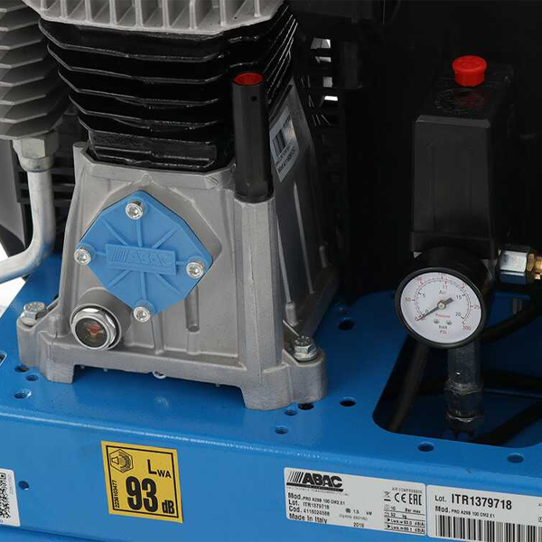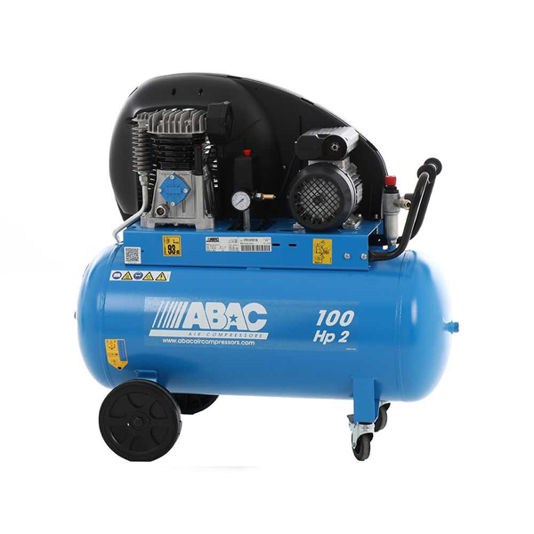 The ABAC EXT A29B 100 CM2 is a robust, belt-driven piston air compressor engineered to withstand the demanding requirements of professional workshops and industrial environments. Equipped with a 2HP electric motor and a 100-liter air tank, it delivers a consistent and continuous air supply — ideal for longer work cycles and high-duty applications.