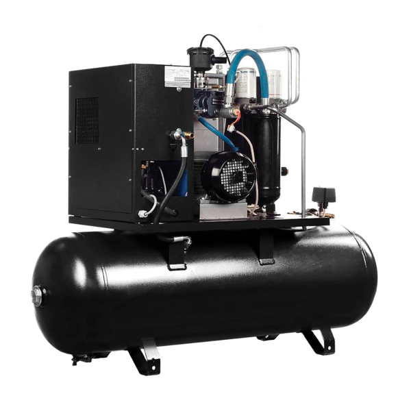 Its rotary screw compression system reduces power consumption by up to 35% compared to piston compressors, making it ideal for factories looking to save on long-term energy costs. The tank-mounted layout simplifies installation and minimizes the footprint in your workshop.