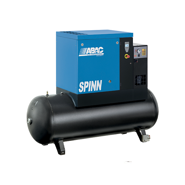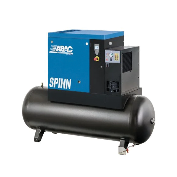 The ABAC SPINN 15E TM CE is a rugged yet space-efficient screw air compressor engineered for demanding industrial environments. Equipped with a robust 20HP (15kW) motor and a 500-liter horizontal tank, it ensures continuous high-performance airflow, delivering up to 1,860 L/min at 8 Bar for power-hungry tools and machines.