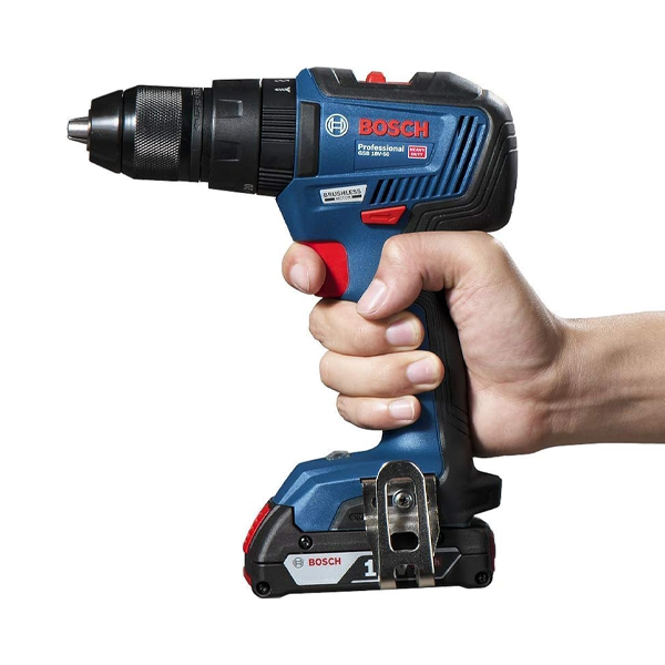 The Bosch GSB 18V-50 cordless hammer drill delivers high-performance power and long-term reliability for professionals working in wood, metal, and masonry. Powered by an 18V Professional Battery System, it ensures continuous runtime and full compatibility across Bosch cordless tools. The intelligent brushless motor reduces friction, extends lifetime, and maximizes efficiency perfect for high-demand construction tasks. With a 2-speed gearbox (0–460 / 0–1800 rpm) and torque output up to 50 Nm, the tool enables controlled screwdriving and fast drilling with precision. The integrated hammer function supports drilling in masonry, while the 13 mm metal chuck ensures firm bit retention under load. Forward/reverse rotation and a variable speed trigger offer superior control, and the belt clip adds portability for mobile work. Supplied with 2× 18V 2.0Ah batteries and fast charger, the GSB 18V-50 is ready for daily site use from the very first job.