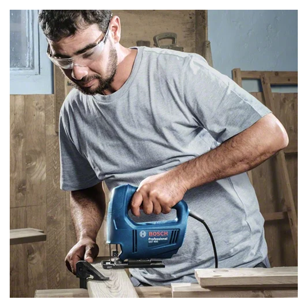 The Bosch GST 650 is a reliable and compact professional jigsaw engineered for clean and precise cutting across wood, aluminium, and steel. Featuring a 450W motor and variable speed control (800–3,100 spm), it allows controlled performance for both straight and curved cuts in demanding workshop or onsite applications. With a cutting depth of 65 mm in wood, it’s ideal for fine finishing jobs, while the lightweight 1.9 kg body improves handling and reduces fatigue during extended use. An ergonomic handle ensures steady grip and control, and the integrated double insulation enhances safety for professional tasks.