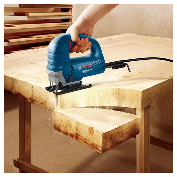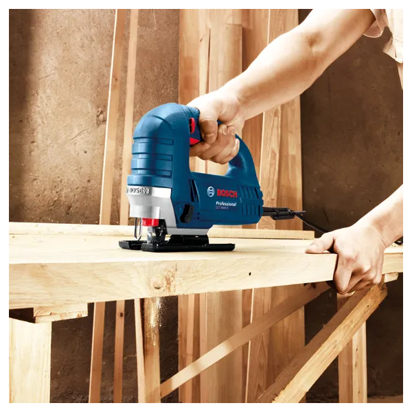 The Bosch GST 8000 E is a compact and professional jig saw engineered for consistent, high-precision cutting in wood, aluminium, and light steel. With a 710W efficient motor, the tool delivers smooth, powerful performance for both straight and curved cutting jobs, whether in workshops or on-site environments. The integrated variable speed control (800–3,100 spm) ensures precise blade adjustment across material types, while the four-stage orbital settings allow users to switch between fine finishing and aggressive cutting. Designed for flexibility, the tool supports 45° bevel cutting, tool-free blade changes, and extended usage thanks to its lightweight 2.5 kg design making it a dependable choice for professional installers, carpenters, and interior fit-out contractors.