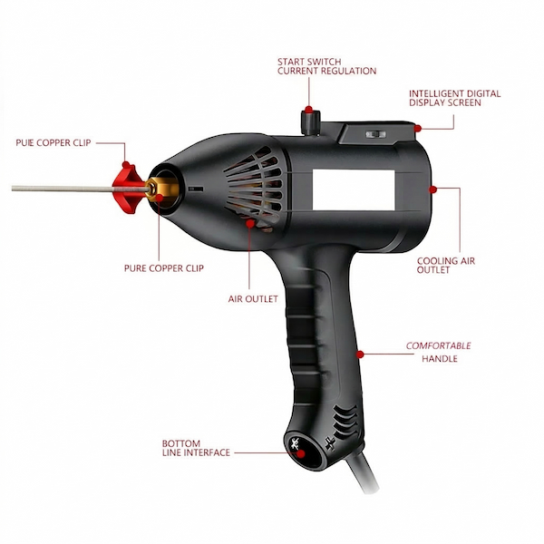 شاشة رقمية ذكية: شاشة LED عالية الدقة توفر عرضًا واضحًا وفوريًا لإعدادات التيار لضمان تحكم دقيق وتجربة استخدام محسّنة.