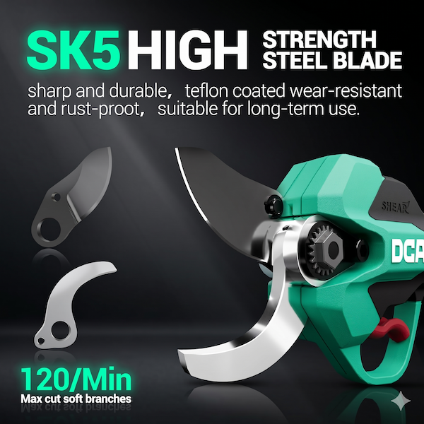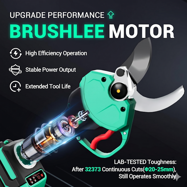 وتلبيةً لمختلف احتياجات التقليم اليومية، يتميز المقص بنظام نقل إلكتروني ذكي بـ 4 مستويات يتيح تعديل سعة القطع من 20 ملم لتصل إلى 35 ملم للتعامل المباشر مع الفروع السميكة. وتتم عملية القص بدقة متناهية عبر شفرات صلبة من نوع SK5 عالية الكربون ومطلية بالتفلون، لضمان قطوعات نظيفة تحافظ على صحة النباتات وتقاوم الصدأ بفعالية. وبوزن خفيف لا يتجاوز 1.35 كجم مع البطارية، يضمن الهيكل المكسو بالمطاط المحبب قبضة محكمة ومريحة تمنع إرهاق اليد والمعصم خلال نوبات العمل الطويلة باستخدام يد واحدة.