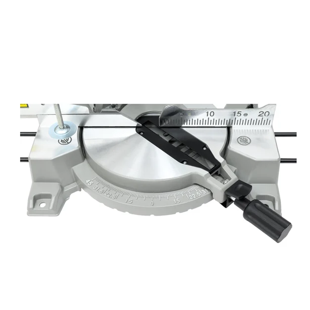With a 45 degree left-side bevel adjustment, it allows for precise angled and compound cuts, making it ideal for framing work, crown molding installation, and detailed joinery. The polished aluminum base enhances stability and helps maintain straight and consistent cutting lines, while the reinforced structure reduces vibration for cleaner and smoother cuts.