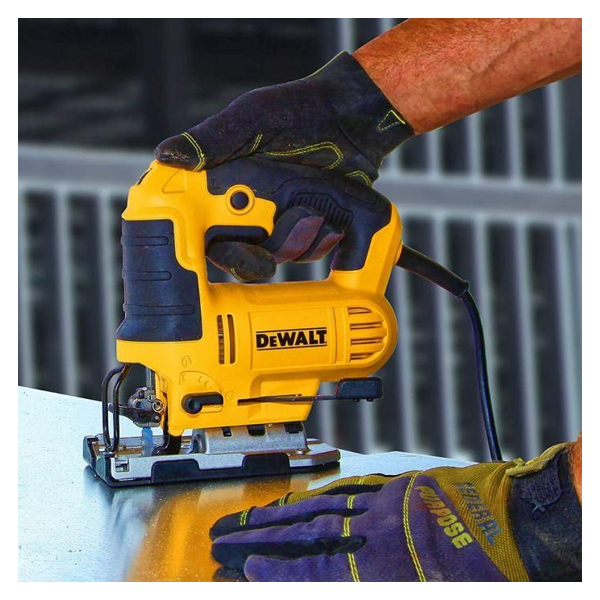 Built to meet the demands of wood, metal, and plastic cutting, the DeWalt DWE349 delivers reliable power through a 650W motor with precision speed control for consistent results. Its 3-stage pendulum action increases cutting efficiency and blade lifespan, while the tool-free blade system ensures fast and easy blade changes with T-shank blades. Designed for professionals seeking accurate cuts at various angles, this jig saw offers 45° bevel cutting on both sides and features an integrated dust blower to maintain clear visibility during work. Whether you're trimming curved lines or making aggressive plunge cuts, the ergonomic compact body and anti-scratch base help ensure maximum control, stability, and protection on all materials. Discover more in our [Sawing > Jig Saws] collection for precise and reliable cutting performance on every project.