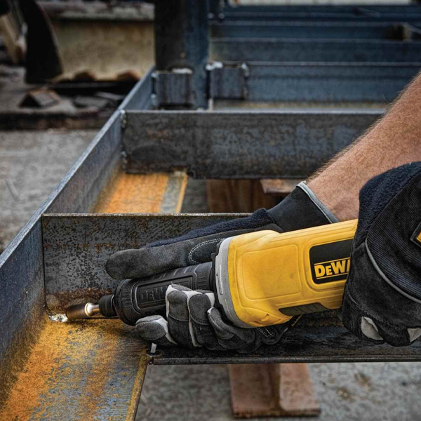 The DeWalt DWE4887N delivers outstanding performance for industrial-grade grinding, polishing, and surface finishing in metalworking and fabrication shops. Powered by a robust 450W motor, it runs at a high no-load speed of 25,000 RPM, ensuring smooth, precise material removal and excellent surface results. Its long-nose slim design provides superior control in tight or hard-to-reach areas, while the anti-lock collet system allows fast accessory changes even after prolonged use. Built with AC/DC compatibility, the tool operates reliably with generators or welding units. Designed with ergonomic grip and lock-on switch, it enhances comfort and reduces fatigue during extended tasks, making it a top choice for professionals seeking precision, reliability, and durability in every cut.
