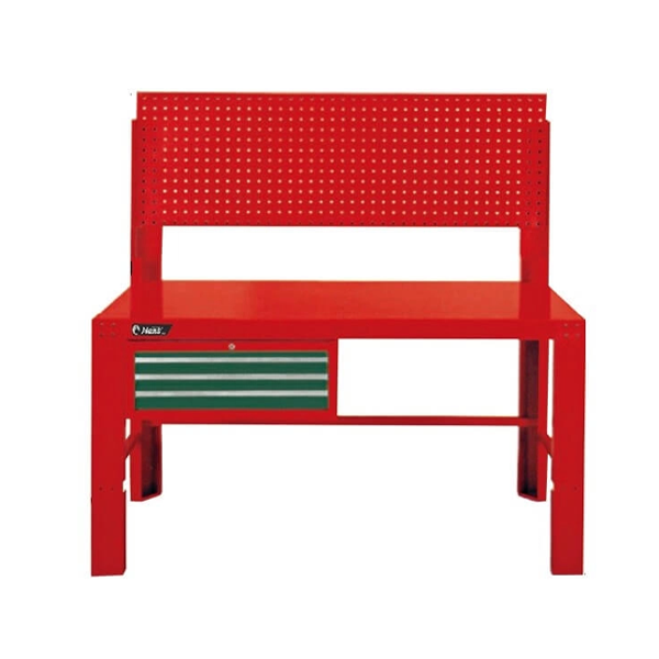 What sets this workbench apart is its integrated tool organization system. With a full back panel for hanging tools like wrenches and pliers, and three spacious drawers with smooth ball-bearing slides, every tool has its place improving efficiency and workflow. The reinforced metal top is built to support heavy machines and components without bending or vibration, offering a reliable surface for intense tasks.
