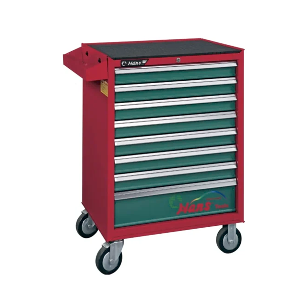 Built for demanding industrial environments, the HANS 9918HQ Heavy-Duty Tool Trolley is engineered to outperform in workshops, garages, and maintenance departments. Its robust wagon-style steel body delivers exceptional structural strength and withstands heavy impacts, making it a trusted choice for professionals who need dependable storage under tough conditions. With 8 full-extension drawers, each 410mm deep, the 9918HQ provides ample space for organizing bulky tools, fine instruments, or workshop components. The drawers slide on smooth ball-bearing rails, ensuring quiet, effortless access even under maximum load. Inside the cabinet, a dual safety locking system offers advanced protection – featuring both a patented internal mechanism and a quick-release latch on each drawer for added user safety.