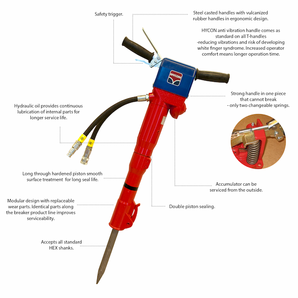 • زناد أمان مريح: مزود بزناد أمان ذو تصميم هندسي يمنح المشغل تحكماً فورياً وآمناً أثناء إنجاز عمليات التكسير المكثفة.
