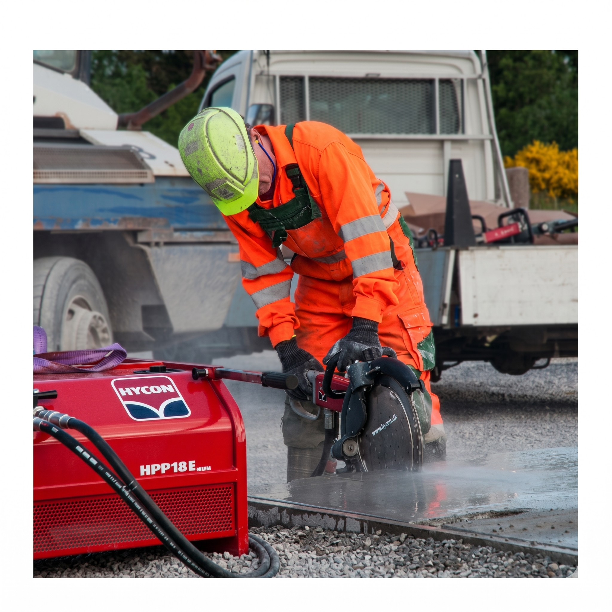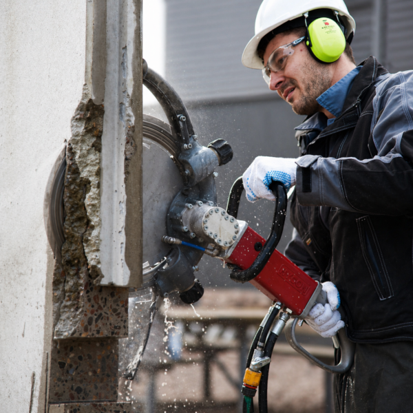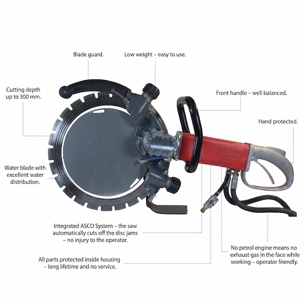 يقدم منشار القص الهيدروليكي هايكون HRS400 الحل الأكثر كفاءة وإنتاجية في قطاع قص الخرسانة، حيث يمنح المشغلين قوة تصل إلى 18 حصان للوصول إلى عمق قص استثنائي يبلغ 300 مم. يمتلك هذا المنشار اليدوي القدرة على اختراق الخرسانة المسلحة والطوب والحجر بسرعة ودقة فائقة. وعلى عكس المناشير الدائرية التقليدية التي تحتاج إلى شفرات ضخمة للوصول إلى العمق، تتيح تقنية "الرينج سو" لشفرة قطرها 400 مم (16 بوصة) تحقيق عمق قص كامل يصل إلى 300 مم (12 بوصة)، مما يجعله أداة استراتيجية لعمل فتحات الأبواب والنوافذ أو إجراء القصات العميقة في الجدران السميكة والأنابيب الضخمة.