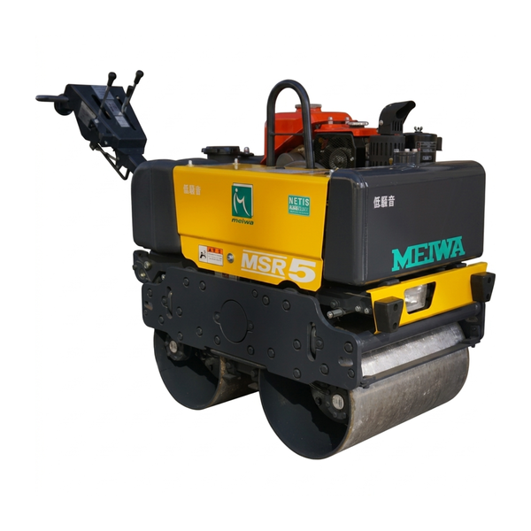 تجمع مدحلة طرق (رصاصه روله) Meiwa MSR5KM بين الهندسة الصناعية المتقدمة وقوة الدمك الهائلة لتلبية متطلبات ضغط الأسفلت والرمال والحصى الشاقة. تعمل هذه الآلة المزدوجة الأسطوانة، والتي يتم توجيهها مشياً، بواسطة محرك ديزل كوبوتا EA300 مبرد بالماء بقوة 7 حصان، مما يضمن بقاء درجات حرارة المحرك الداخلية في مستوياتها المثالية حتى خلال نوبات العمل المستمرة في المناخات الحارة. تسلط الوحدة ضغطاً هائلاً بفضل قوة طرد مركزي تبلغ 11.8 كيلو نيوتن (1200 كجم قوة) وتعمل بـ تردد اهتزاز عالي يبلغ 55 هرتز (3300 ذبذبة/دقيقة). يضمن هذا المزيج القوي دمجاً كثيفاً وموحداً للمواد في المساحات الضيقة، وأكتاف الطرق، والممرات التي لا يمكن للمعدات الثقيلة ذاتية القيادة الوصول إليها.