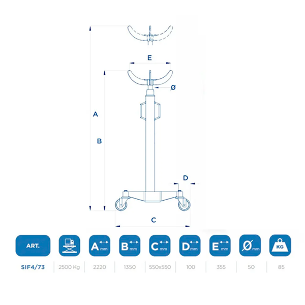 For professionals seeking precision, durability, and safety in transmission lifting, the OMCN SIF4/73 Transmission Jack stands as a premium Italian-made solution. With an impressive 2.5-ton lifting capacity, it is engineered for demanding automotive and industrial workshop environments, especially when working with heavy-duty gearboxes and driveline components.