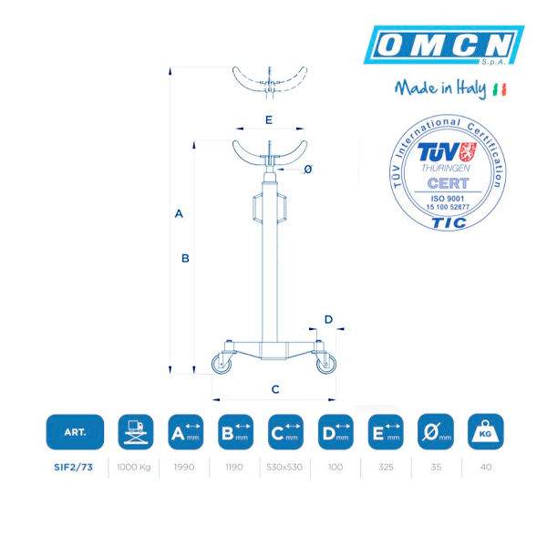 For professionals dealing with vehicle transmissions, the OMCN SIF2/73 Transmission Jack delivers unmatched precision, safety, and reliability. Built in Italy to the highest standards, this 1 Ton lifting jack offers exceptional control even in tight workshop pits or under low-clearance vehicles.