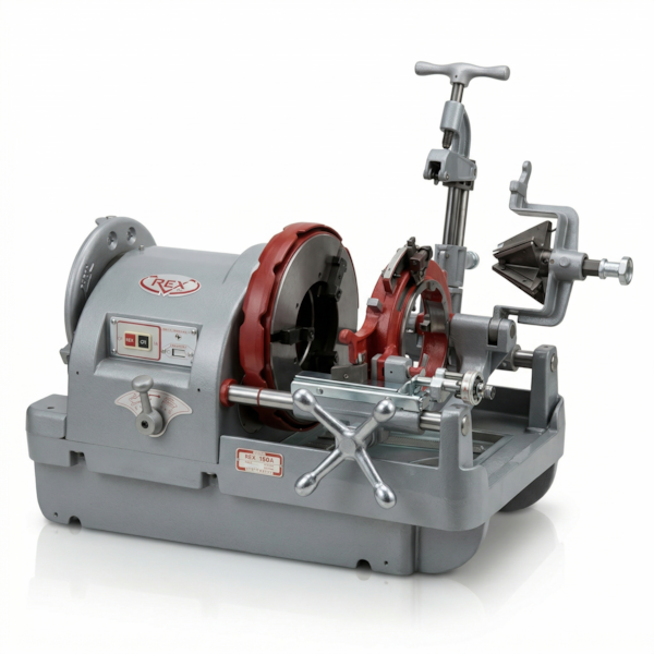 تعتبر ريكس 150A ماكينة قلوظة مواسير من الدرجة الصناعية، مصممة هندسياً في اليابان للتعامل حصرياً مع تطبيقات الأقطار الكبيرة. صُممت لتنفيذ أصعب مشاريع الصناعة ومكافحة الحرائق والري، وتقوم بتسنين مواسير الحديد والستانلس ستيل بكفاءة للمقاسات التي تتراوح بين 2-1/2 إلى 6 بوصة. تعمل الماكينة بواسطة محرك مكثف بقوة 750 واط عالي الكفاءة، لتوفر تشغيلاً بهدوء استثنائي مع عزم دوران ثابت وموثوق. وتتميز بناقل حركة متطور بسرعتين، مما يتيح للمشغلين التبديل بسهولة بين 18 دورة/دقيقة للمواسير الأصغر و 6 دورات/دقيقة للأقطار الضخمة بحجم 6 بوصة.