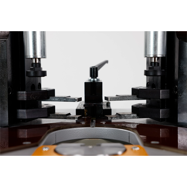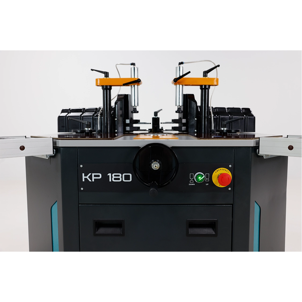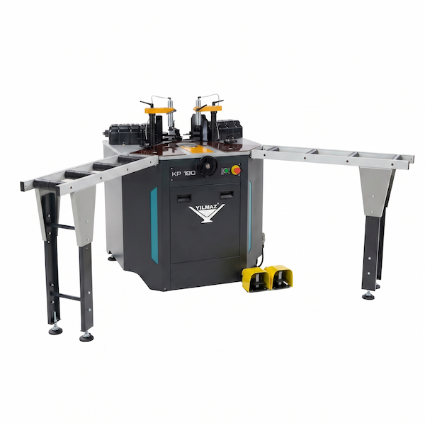 ولتحقيق أقصى قدر من كفاءة سير العمل وتحكم المشغل، تم تزويد الماكينة بنظام دواسة قدم مزدوجة سهل الاستخدام للغاية. تعمل الدواسة الأولى على تنشيط المثبتات الهوائية الرأسية لتأمين البروفايل، بينما تبدأ الدواسة الثانية شوط الكبس الهيدروليكي القوي. كما يتيح زر الإرجاع المخصص للأسطوانات إعادة الضبط بسرعة بالقرب من قطعة العمل، مما يسرع عمليات الإعداد المتتالية بشكل كبير. بفضل طاولة العمل الفولاذية شديدة الصلابة والوزن الإجمالي الذي يبلغ 436 كجم، توفر ماكينة يلماز KP180 استقراراً هيكلياً مطلقاً، حيث تمتص الاهتزازات التشغيلية تماماً للحفاظ على دقة متناهية عبر سنوات من الاستخدام الصناعي المستمر.