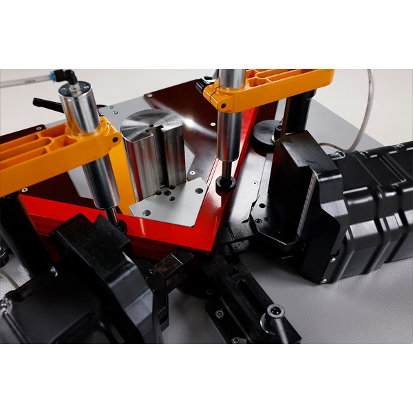 توفر ماكينة يلماز KP180 حلاً متقدماً كـ ماكينة كبس زوايا الألمنيوم الهيدروليكية، والتي تمت هندستها لتجميع قواطع (بروفايلات) الألمنيوم بدقة وبشكل دائم. يعمل هذا النظام بواسطة محرك قوي بقدرة 1.14 كيلو واط (400 فولت)، وقد تم تصميمه لتلبية المتطلبات الصارمة لعمليات تصنيع الأبواب والنوافذ واسعة النطاق. تستخدم الماكينة رؤوس كبس هيدروليكية متزامنة مدعومة بأسطوانات ضخمة بقوة 2 × 5 طن، مما يضمن تشويهاً نظيفاً وموحداً لزوايا الألمنيوم دون التواء أو مساس بالسلامة الهيكلية للإطار. تضمن قوة الضغط الهائلة هذه تجميعاً مثالياً ومحكماً في كل مرة، مما يجعلها أصلاً لا غنى عنه لورش التصنيع ذات الإنتاجية العالية.