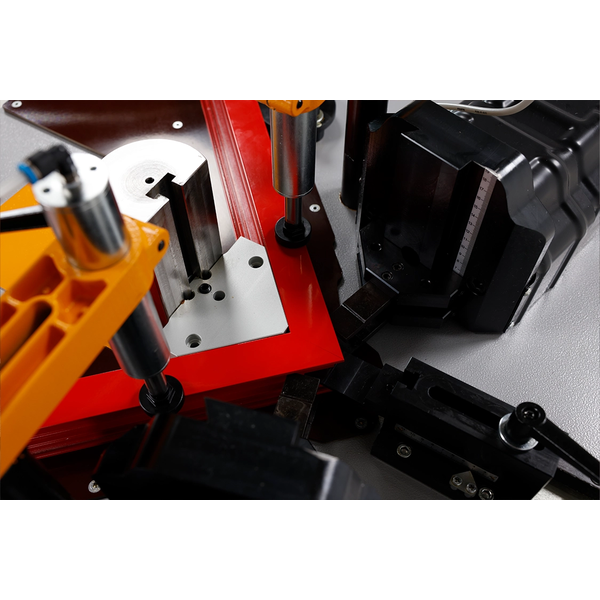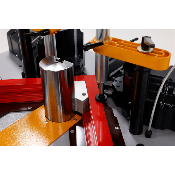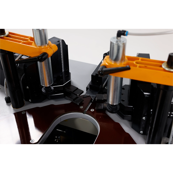 تتمركز قابلية التعديل والدقة المتناهية في صميم التصميم المعماري لماكينة KP180. تستوعب الماكينة بسهولة مجموعة متنوعة من أشكال الإطارات، حيث تدعم أبعاداً قصوى للبروفايل تبلغ ارتفاع 185 × عرض 150 ملم وتوفر أقصى ارتفاع للكبس يبلغ 180 ملم. يمكن للمشغلين تكوين شوط الأسطوانة الهيدروليكية ومصدات البروفايل بسلاسة باستخدام نظام مقياس مليمترى عالي الدقة. وأثناء عملية الكبس، تعمل ألواح الحماية المصنوعة من البولي أميد على حماية الأسطح الحساسة لبروفايلات الألمنيوم من الخدوش والاحتكاك بفعالية. بالإضافة إلى ذلك، بمجرد اكتمال دورة الكبس، تتراجع زاوية التمركز ذات الـ 90 درجة تلقائياً أسفل الطاولة، مما يخلي مساحة العمل فوراً لإزالة الإطار بسرعة ويقلل من وقت التوقف عن العمل.