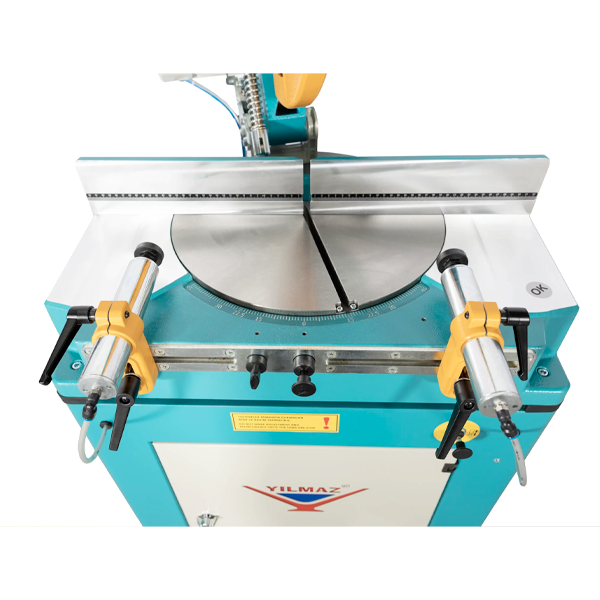 What sets this saw apart is its dual-direction miter cutting head, allowing perfect 45 degree cuts in both left and right directions essential for frame assemblies, angled joints, and complex architectural structures. The double pneumatic clamping system ensures tight grip and unmatched safety, minimizing movement during cutting operations. Its mist lubrication system cools the blade efficiently, preserving blade life and cut quality.