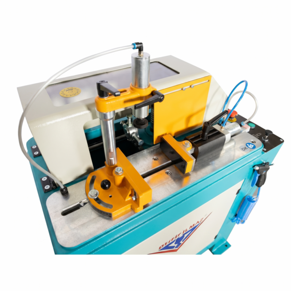 • التميز الهيدروليكي - الهوائي: تتميز بنظام تغذية تفريز (هيدروليكي - هوائي) مصمم خصيصاً لإجراء عمليات تفريز نهائي عالية الجودة وسلسة ومتحكم بها تماماً على قواطع الـ PVC والألمنيوم.