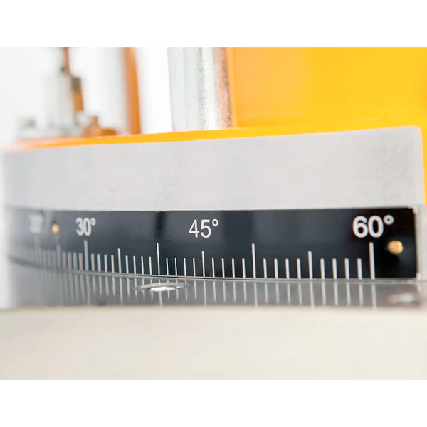 Its manual upcut system lifts the blade from beneath the workpiece, offering superior control and smoother operation compared to top-down designs. The 360-degree rotary platform, operated via foot pedal, provides unmatched angle versatility, ideal for custom angles, miters, and longitudinal cutting in production settings.